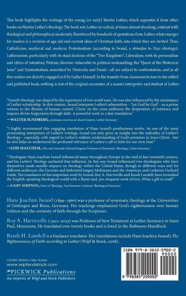 Hans Joachim Iwand (1899-1960) was a professor of systematic theology at the Universities of Göttingen and Bonn, Germany. His teachings emphasized God's righteousness over human volition and the certainty of faith through the Scriptures. > Roy A. Harrisville (1922-2023) was Professor of New Testament at Luther Seminary in Saint Paul, Minnesota. He translated over twenty books and is listed in the Bultmann Handbuch. > Randi H. Lundell is a freelance translator. Her translations include Hans Joachim Iwand's The Righteousness of Faith according to Luther (Wipf & Stock, 2008).