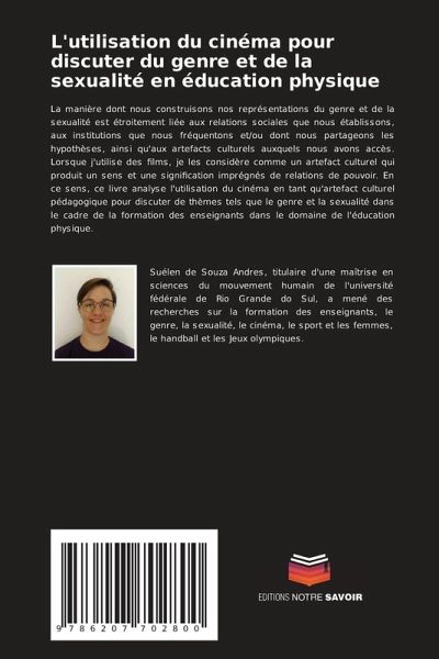 La manière dont nous construisons nos représentations du genre et de la sexualité est étroitement liée aux relations sociales que nous établissons, aux institutions que nous fréquentons et/ou dont nous partageons les hypothèses, ainsi qu'aux artefacts culturels auxquels nous avons accès. Lorsque j'utilise des films, je les considère comme un artefact culturel qui produit un sens et une signification imprégnés de relations de pouvoir. En ce sens, ce livre analyse l'utilisation du cinéma en tant qu'artefact culturel pédagogique pour discuter de thèmes tels que le genre et la sexualité dans le cadre de la formation des enseignants dans le domaine de l'éducation physique.