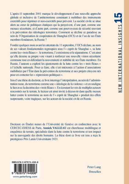 Docteure en Études russes de l'Université de Genève en codirection avec le CERCEC-EHESS de Paris, Annick VALLEAU est chercheuse multilingue et enquêtrice de terrain, spécialisée dans la lutte contre le terrorisme et son impact sur la sauvegarde des droits humains. La thèse dont ce livre est issu a reçu le prestigieux Prix Latsis Universitaire 2021.
