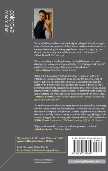'Uché's first book, Luxury Fashion Branding, revealed an author of intelligence, insight with humor, and a passion for the online side of luxury. But time has proved that this was a subject that begged the question on a future work fully dedicated to luxury e-business. She is perfectly positioned to access clients and companies' online luxury policies ranging from best practices to no practices. Her commitment to excellence and facilitating the online aspects of luxury make her book a must read.' - Michael Boroian, Founder& Managing Partner, Sterling International (Luxury Executive Search)