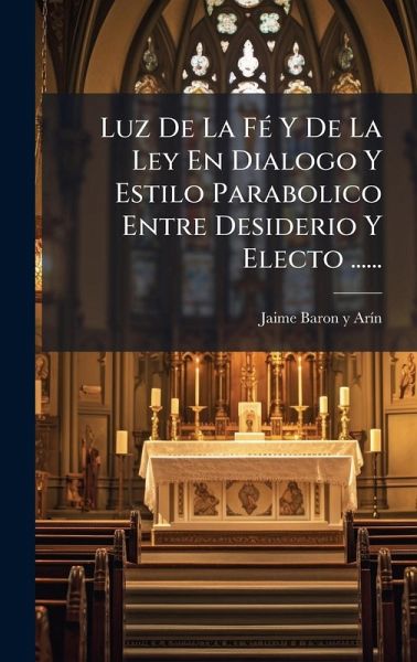 "Luz De La Fé Y De La Ley En Dialogo Y Estilo Parabolico Entre Desiderio Y Electo ......" presents a dialogue, styled as parables, between two figures: Desiderio and Electo. Authored by Jaime Baron y ArÃ-n ((O.P.)), this Spanish-language work delves into the intersection of faith and law within a Catholic framework. The book explores ethical considerations and theological concepts through the interactions and narratives involving Desiderio and Electo, offering readers insights into Catholic doctrine and its practical application. This book will appeal to those interested in Christian theology, particularly within the Catholic tradition, and to readers who appreciate philosophical dialogues exploring complex religious and ethical themes. The parabolic style enhances the accessibility of the subject matter, making it suitable for both academic study and personal reflection. This work has been selected by scholars as being culturally important, and is part of the knowledge base of civilization as we know it. This work was reproduced from the original artifact, and remains as true to the original work as possible. Therefore, you will see the original copyright references, library stamps (as most of these works have been housed in our most important libraries around the world), and other notations in the work. This work is in the public domain in the United States of America, and possibly other nations. Within the United States, you may freely copy and distribute this work, as no entity (individual or corporate) has a copyright on the body of the work. As a reproduction of a historical artifact, this work may contain missing or blurred pages, poor pictures, errant marks, etc. Scholars believe, and we concur, that this work is important enough to be preserved, reproduced, and made generally available to the public. We appreciate your support of the preservation process, and thank you for being an important part of keeping this knowledge alive and relevant.