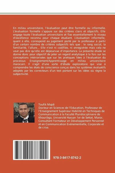 En milieu universitaire, l évaluation peut être formelle ou informelle. L évaluation formelle s appuie sur des critères clairs et objectifs. Elle engage toute l évaluation universitaire et fixe essentiellement le niveau d excellence reconnu pour chaque étudiant. L évaluation informelle, quant à elle, correspond au jugement porté par le professeur à partir d un certain nombre de critères subjectifs tels que : le rang social, la familiarité, l allure... Elle n est ni codifiée, ni enregistrée mais cela ne veut pas dire qu elle est dépourvue d importance. La présente étude se donne donc pour objectif de jeter un regard analytique à la fois sur les conceptions intériorisées que sur les pratiques liées à l évaluation du processus Enseignement/Apprentissage en milieu universitaire marocain. Il s agit d une sorte d étude exploratoire qui vise à comprendre les états de conscience conçus dans les systèmes évaluatifs adoptés par les correcteurs d un test portant sur les idées où règne la subjectivité.
