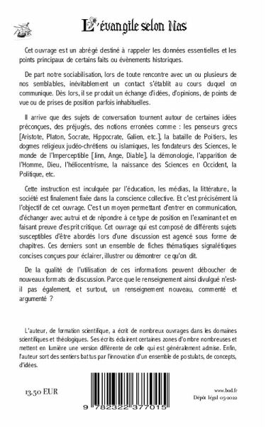 Cet ouvrage est un abrégé destiné à rappeler les données essentielles et les points principaux de certains faits ou évènements historiques.De part notre sociabilisation, lors de toute rencontre avec un ou plusieurs de nos semblables, inévitablement un contact s'établit au cours duquel on communique. Dès lors, il se produit un échange d'idée, d'opinion, de point de vue ou d'une prise de position parfois inhabituelle.Il arrive que des sujets de conversation tournent autour de certaines idées préconçues, des préjugés, des notions erronées comme : les penseurs grecs (Aristote, Platon, Socrate, Hippocrate, Galien, etc.), la bataille de Poitiers, les dogmes religieux judéo-chrétiens ou islamiques, les pères fondateurs des Sciences, le monde de l'Imperceptible (Jinn, Ange, Diable), la démonologie, l'apparition de l'Homme, Dieu, l'héliocentrisme, la naissance des Sciences en Occident, la Politique, etc.Cette instruction inculquée par l'éducation, les médias, la littérature, la société est finalement fixée dans la conscience collective. Et c'est précisément là l'objectif de cet ouvrage : un moyen permettant d'entrer en communication, d'échanger avec autrui et de répondre à ce type de position en l'examinant et en faisant preuve d'esprit critique. Cet ouvrage qui est composé de différents sujets susceptibles d'être abordés lors d'une discussion est agencé sous formes de chapitres. Ces derniers sont un ensemble de fiches thématiques signalétiques concises conçues pour éclairer, illustrer ou démontrer ce que l'ont dit.De la qualité de l'utilisation de ces informations peuvent déboucher de nouveaux formats de discussion. Parce que le renseignement ainsi divulgué n'est-il pas également, et surtout, un renseignement nouveau, commenté et argumenté ?