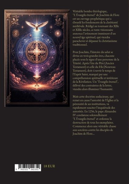 Véritable bombe théologique, "L'Évangile éternel" de Joachim de Flore est un ouvrage prophétique qui a ébranlé les fondements de la chrétienté médiévale. Rédigé au tournant des XIIe et XIIIe siècles, ce texte visionnaire annonce l'avènement imminent d'un nouvel âge spirituel, qui viendra parachever et dépasser le christianisme traditionnel. Pour Joachim, l'histoire du salut se divise en trois grandes ères, chacune placée sous le signe d'une personne de la Trinité. Après l'ère du Père (Ancien Testament) et celle du Fils (Nouveau Testament), doit s'ouvrir le temps de l'Esprit Saint, marqué par une compréhension spirituelle et intérieure de la Révélation. Un "Évangile éternel", délivré des contraintes de la lettre, viendra alors illuminer l'humanité. Mais cette doctrine audacieuse, qui remet en cause l'autorité de l'Église et la pérennité de ses institutions, va rapidement susciter l'inquiétude des autorités. En 1256, le pape Alexandre IV condamne solennellement "L'Évangile éternel" et ordonne la destruction de tous les exemplaires. Commence alors une véritable chasse aux sorcières contre les disciples de Joachim. Malgré cette censure, la pensée joachimite ne cessera d'influencer en profondeur les courants spirituels et réformateurs du Moyen Âge, des Franciscains aux Hussites en passant par les Béguines. Véritable testament spirituel d'un prophète incompris, "L'Évangile éternel" reste un témoignage fascinant sur les espoirs et les tensions qui travaillaient la chrétienté médiévale.