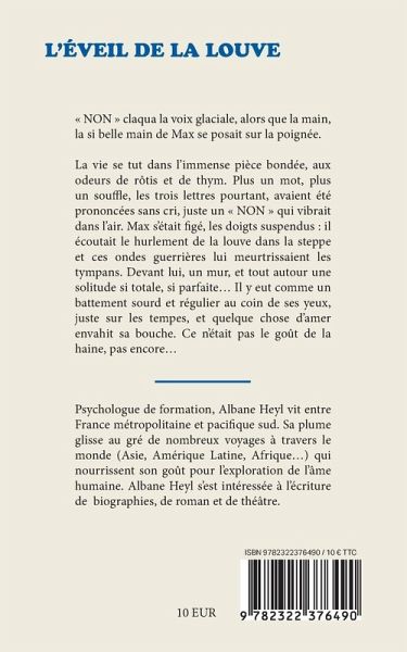 « NON » claqua la voix glaciale, alors que la main, la si belle main de Max se posait sur la poignée.La vie se tut dans l'immense pièce bondée, aux odeurs de rôtis et de thym. Plus un mot, plus un souffle, les trois lettres pourtant, avaient été prononcées sans cri, juste un « NON » qui vibrait dans l'air. Max s'était figé, les doigts suspendus : il écoutait le hurlement de la louve dans la steppe et ces ondes guerrières lui meurtrissaient les tympans. Devant lui, un mur, et tout autour une solitude si totale, si parfaite... Il y eut comme un battement sourd et régulier au coin de ses yeux, juste sur les tempes, et quelque chose d'amer envahit sa bouche. Ce n'était pas le goût de la haine, pas encore...L'éveil de la Louve est avant tout un roman sur la puissance : puissance féminine, puissance du lien transgénérationnel, puissance de la résilience, qui se dessinent à travers une histoire banale. Helga est une jeune femme qui a voué son existence à se rendre invisible et sans émotion, jusqu'à ce qu'un évènement extraordinaire lui impose un nouveau chemin : la naissance de sa fille. Il en résulte une métamorphose, une quasi lycanthropie, qui génère des drames dans son microcosme, l'obligeant à interroger son histoire, l'histoire de sa famille, celle de son compagnon, afin que, par amour pour l'enfant, sa « résurrection» soit entière.