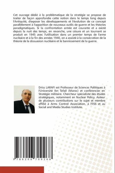 Cet ouvrage dédié à la problématique de la stratégie se propose de traiter de façon approfondie cette notion dans le temps long depuis l'Antiquité, d'exposer les développements et l'évolution de ce concept parallèlement à l'apparition de nouveaux outils de guerre et les théories paradigmatiques. Si la confrontation armée est courante et a existé depuis la nuit des temps, en revanche, une césure et un tournant se produit en 1945 avec l'utilisation dans un premier temps de l'arme nucléaire et à la fin des années 1940, on a assisté à la consécration de la théorie de la dissuasion nucléaire et le bannissement de la guerre.