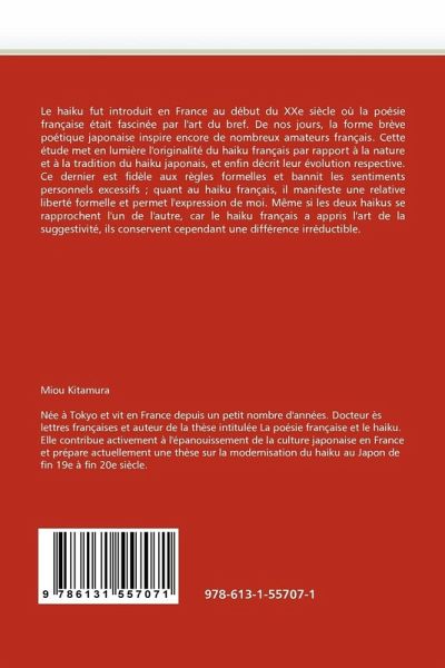 Le haiku fut introduit en France au début du XXe siècle où la poésie française était fascinée par l'art du bref. De nos jours, la forme brève poétique japonaise inspire encore de nombreux amateurs français. Cette étude met en lumière l'originalité du haiku français par rapport à la nature et à la tradition du haiku japonais, et enfin décrit leur évolution respective. Ce dernier est fidèle aux règles formelles et bannit les sentiments personnels excessifs ; quant au haiku français, il manifeste une relative liberté formelle et permet l'expression de moi. Même si les deux haikus se rapprochent l'un de l'autre, car le haiku français a appris l'art de la suggestivité, ils conservent cependant une différence irréductible.