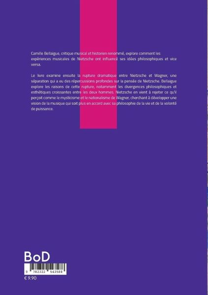 Camille Bellaigue, critique musical et historien renommé, explore comment les expériences musicales de Nietzsche ont influencé ses idées philosophiques et vice versa. Le livre examine ensuite la rupture dramatique entre Nietzsche et Wagner, une séparation qui a eu des répercussions profondes sur la pensée de Nietzsche. Bellaigue explore les raisons de cette rupture, notamment les divergences philosophiques et esthétiques croissantes entre les deux hommes. Nietzsche en vient à rejeter ce qu'il perçoit comme le mysticisme et le nationalisme de Wagner, cherchant à développer une vision de la musique qui soit plus en accord avec sa philosophie de la vie et de la volonté de puissance. Bellaigue continue en explorant les écrits ultérieurs de Nietzsche sur la musique, notamment ses critiques de la musique romantique et son admiration pour les compositeurs comme Georges Bizet, dont l'opéra "Carmen" représentait pour Nietzsche une clarté et une vitalité opposées au style wagnérien. Le livre analyse comment ces préférences musicales sont liées aux concepts clés de la philosophie de Nietzsche, comme le Dionysiaque et l'Apollinien, la décadence et la renaissance culturelle.