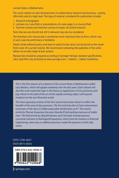 This is the first volume of a subseries of the Lecture Notes in Mathematics which will appear randomly over the next years. Each volume will describe some important topic in the theory or applications of Lévy processes and pay tribute to the state of the art of this rapidly evolving subject with special emphasis on the non-Brownian world. The three expository articles of this first volume have been chosen to reflect the breadth of the area of Lévy processes. The first article by Ken-iti Sato characterizes extensions of the class of selfdecomposable distributions on R^d. The second article by Thomas Duquesne discusses Hausdorff and packing measures of stable trees. The third article by Oleg Reichmann and Christoph Schwab presents numerical solutions to Kolmogoroff equations, which arise for instance in financial engineering, when Lévy or additive processes model the dynamics of the risky assets.