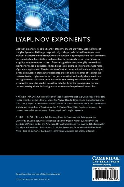 Lyapunov exponents lie at the heart of chaos theory, and are widely used in studies of complex dynamics. Utilising a pragmatic, physical approach, this self-contained book provides a comprehensive description of the concept. Beginning with the basic properties and numerical methods, it then guides readers through to the most recent advances in applications to complex systems. Practical algorithms are thoroughly reviewed and their performance is discussed, while a broad set of examples illustrate the wide range of potential applications. The description of various numerical and analytical techniques for the computation of Lyapunov exponents offers an extensive array of tools for the characterization of phenomena such as synchronization, weak and global chaos in low and high-dimensional set-ups, and localization. This text equips readers with all the investigative expertise needed to fully explore the dynamical properties of complex systems, making it ideal for both graduate students and experienced researchers.