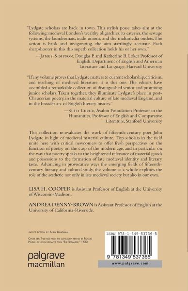 This collection re-evaluates the work of fifteenth-century poet John Lydgate in light of medieval material culture. Top scholars in the field unite here with critical newcomers to offer fresh perspectives on the function of poetry on the cusp of the modern age, and in particular on the way that poetry speaks to the heightened relevance of material goods and possessions to the formation of late medieval identity and literary taste. Advancing in provocative ways the emerging fields of fifteenth-century literary and cultural study, the volume as a whole explores the role of the aesthetic not only in late medieval society but also in our own.