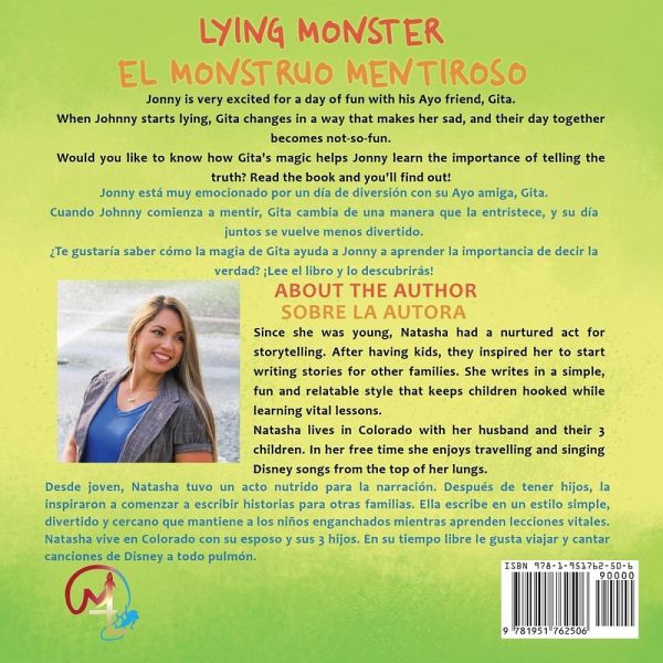 A light-hearted book on the importance of telling the truth. Jonny is very excited for a day of fun with his Ayo friend, Gita. When Johnny starts lying, Gita changes in a way that makes her sad, and their day together becomes not-so-fun. Would you like to know how Gita's magic helps Jonny learn the importance of telling the truth? Read the book and you'll find out! Un libro sobre la importancia de decir la verdad. Jonny está muy emocionado por un día de diversión con su Ayo amiga, Gita. Cuando Johnny comienza a mentir, Gita cambia de una manera que la entristece, y su día juntos se vuelve menos divertido. ¿Te gustaría saber cómo la magia de Gita ayuda a Jonny a aprender la importancia de decir la verdad? ¡Lee el libro y lo descubrirás!