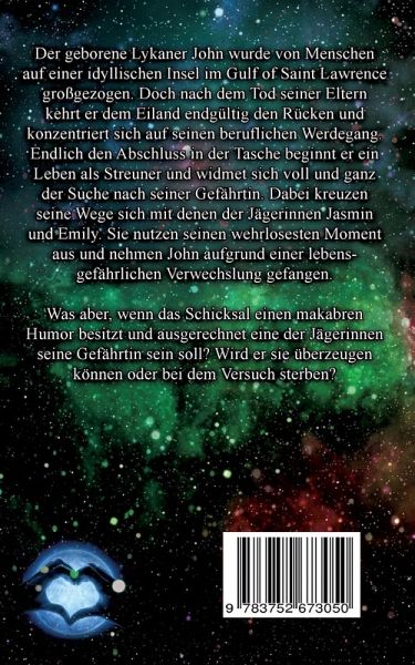 Der geborene Lykaner John wurde von Menschen auf einer idyllischen Insel im Gulf of Saint Lawrence großgezogen. Doch nach dem Tod seiner Eltern kehrt er dem Eiland endgültig den Rücken und konzentriert sich auf seinen beruflichen Werdegang.Endlich den Abschluss in der Tasche beginnt er ein Leben als Streuner und widmet sich voll und ganz der Suche nach seiner Gefährtin. Dabei kreuzen seine Wege sich mit denen der Jägerinnen Jasmin und Emily. Sie nutzen seinen wehrlosesten Moment aus und nehmen John aufgrund einer Verwechslung gefangen.Was aber, wenn das Schicksal einen makabren Humor besitzt und ausgerechnet eine der Jägerinnen seine Gefährtin sein soll? Wird er sie überzeugen können oder bei dem Versuch sterben?___Hierbei handelt es sich um die lektorierte Neu-Auflage des unerfahrenen Debüts und zeitgleich ersten Bandes John Hunter (2017 erschienen)______In diesem Buch kommen explizite Szenen (Gewalt, Sex) vor und es fallen so manche mehr oder weniger wüste Worte.___Die Reihe Lykaner Liebe besteht aus einer, teilweise fortlaufenden, Geschichte über mehrere Bände:John & Emily (Band 1),Owen & Adeen (Band 2),Kjartan & Shannon (Band 3),Weitere Bände sind bereits in Arbeit