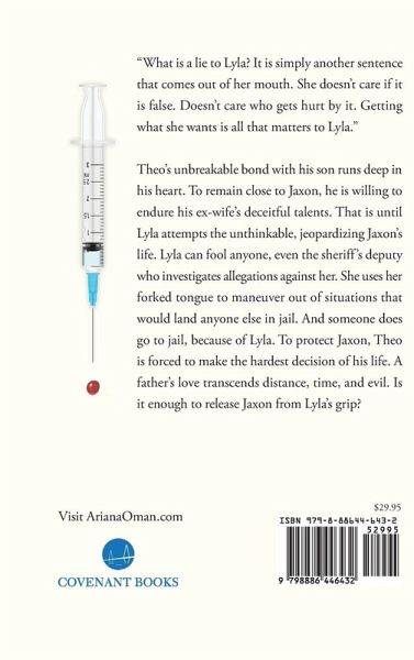 "What is a lie to Lyla? It is simply another sentence that comes out of her mouth. She doesn't care if it is false. Doesn't care who gets hurt by it. Getting what she wants is all that matters to Lyla." Theo's unbreakable bond with his son runs deep in his heart. To remain close to Jaxon, he is willing to endure his ex-wife's deceitful talents. That is until Lyla attempts the unthinkable, jeopardizing Jaxon's life. Lyla can fool anyone, even the sheriff's deputy who investigates allegations against her. She uses her forked tongue to maneuver out of situations that would land anyone else in jail. And someone does go to jail, because of Lyla. To protect Jaxon, Theo is forced to make the hardest decision of his life. A father's love transcends distance, time, and evil. Is it enough to release Jaxon from Lyla's grip?