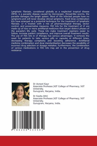 Lymphatic filariasis, considered globally as a neglected tropical disease (NTD), is a parasitic disease caused by microscopic, thread-like worms, the parasite damages the lymph system. Most of the infected people have no symptoms and will never develop clinical symptoms. Fixed dose combination kits have emerged as a potential technique for the treatment of lymphatic filariasis. LF is treated with a mix of pharmacological therapy, vector control, and preventative measures. FDC kits for the treatment of LF are made up of two or more antifilarial medicines that target distinct phases of the parasite's life cycle. These kits make treatment regimens easier to follow, increase patient compliance, and improve overall treatment results. The use of FDC kits in LF therapy has various advantages. It removes the need for patients to take various pills or capsules at different times, decreasing therapy complexity and boosting adherence. Antifilarial medicine combination and dose standardisation decreases the possibility of incorrect drug selection or dosage mistakes. Furthermore, the combination of various medications in FDC kits may aid in the prevention of drug resistance.