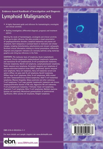This handbook provides a visual presentation of lymphoproliferative disorders, lymphoid leukaemias and plasma cell neoplasms. Pertinent clinical information relating to clinical presentation, differential diagnosis, treatments and prognostic indicators are concisely outlined, using numerous graphics and citing key references in the field.