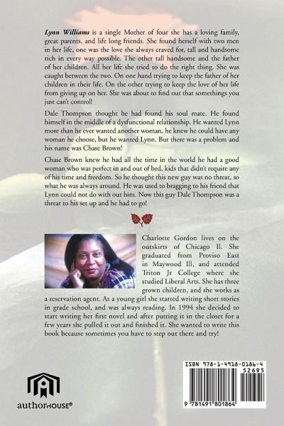 Lynn Williams is a single Mother of four she has a loving family,great parents, and life long friends. She found herself with two men in her life, one was the love she always craved for, tall and handsome rich in every way possible. The other tall handsome and the father of her children. All her life she tried to do the right thing. She was caught between the two. On one hand trying to keep the father of her children in their life. On the other trying to keep the love of her life from giving up on her. She was about to find out that somethings you just can¿t control! Dale Thompson thought he had found his soul mate. He found himself in the middle of a dysfunctional relationship. He wanted Lynn more than he ever wanted another woman, he knew he could have any woman he choose, but he wanted Lynn. But there was a problem and his name was Chase Brown! Chase Brown knew he had all the time in the world he had a good woman who was perfect in and out of bed, kids that didn¿t require any of his time and freedom. So he thought this new guy was no threat, so what he was always around. He was used to bragging to his friend that Lynn could not do with out him. Now this guy Dale Thompson was a threat to his set up and he had to go!