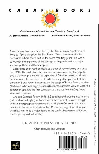 Aime Cesaire has been described by the Times Literary Supplement as likely to "figure alongside the Eliot-Pound-Yeats triumvirate that has dominated official poetic culture for more than fifty years." He was a cofounder and exponent of the concept of negritude and is a major spiritual, political, and literary figure. Cesaire has been read politically as a poet of revolutionary zeal since the 1960s. This collection, the only one in existence in any language to give a truly comprehensive retrospective of Cesaire's poetic production, demonstrates the narrowness of earlier readings that grew out of the climate of Black Power influenced by the essays of Frantz Fanon, another Martinican, who was largely responsible for the ambient view of Csaire a generation ago. It is the first collection to translate And the Dogs Were Silent and i, laminaria... Lyric and Dramatic Poetry, 1946-82 goes beyond anything else in print (in French or in English) in that it locates the issues of Cesaire's struggle with an emerging postmodern vision. It will place Cesaire in a strategic position in the current debate in the U.S. over emergent literature and will show him to be a major figure in the conflict between tradition and contemporary cultural identity.