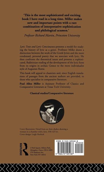 Lyric Texts and Lyric Consciousness presents a model for studying the history of lyric as a genre. Prof Miller draws a distinction between the work of the Greek lyrists and the more condensed, personal poetry that we associate with lyric. He then confronts the theoretical issues and presents a sophisticated, Bakhtinian reading of the development of the lyric form from its origins in archaic Greece to the more individualist style of Augustan Rome. This book will appeal to classicists and, since English translations of passages from the ancient authors are provided, to those who specialise in comparative literature.