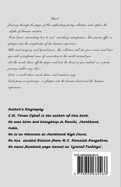 Journey through the pages of this captivating poetry collection and explore the depths of human emotion. From heart- wrenching love to soul- searching introspection, these poems offer a glimpse into the complexities of the human experience. With vivid imagery and lyrical prose, this collection will stir your senses and leave you with a profound sense of connection to the world around you. Let the words dance off the pages and into the heart as you embark on a poetic journey unlike any other. Enter a world where words dance and emotions sing. Each poem is a journey , a glimpse into the human heart and the human experience.