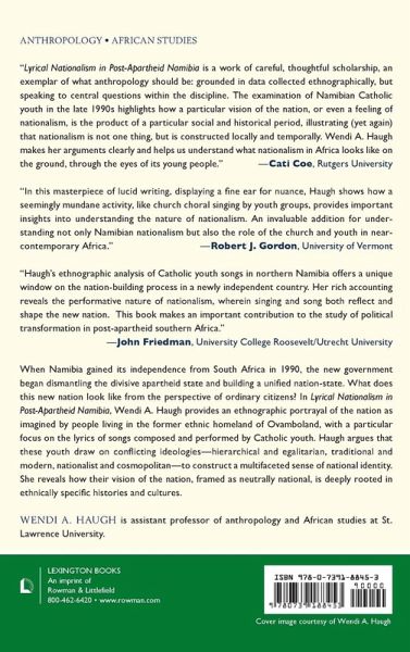 Chapter 1: Introduction Chapter 2: A History of Nationalism in Namibia Chapter 3: Catholic Youth Songs in Ethnographic Perspective Chapter 4: Shared Possessions, Shared Interests: The Nation as Individual(s) Chapter 5: Kings and Their Countries: The Nation as Hierarchical Whole Chapter 6: Beyond Pagans: Building and Maintaining a Modern Christian Nation Chapter 7: Connecting Across Difference: Cosmopolitan Nation Chapter 8: Conclusion