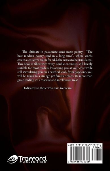 The ultimate in passionate semierotic poetry-"The best modern poetry read in a long time," where words create a seductive realm for all the senses to be stimulated. This book is filled with witty double entendre, still keenly suitable for most readers. Possessing you at your core while still stimulating you on a cerebral level, from page one, you will be taken to a strange yet familiar place. It's more than great reading; it's a visceral and intellectual treat. Dedicated to those who dare to dream.