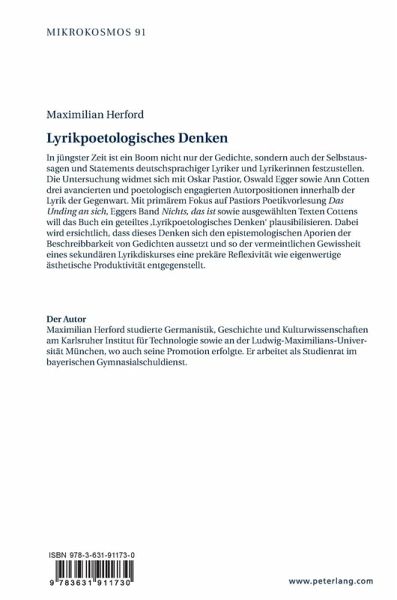 wird ersichtlich, dass dieses Denken sich den epistemologischen Aporien der Beschreibbarkeit von Gedichten aussetzt und so der vermeintlichen Gewissheit eines sekundären Lyrikdiskurses eine prekäre Reflexivität wie eigenwertige ästhetische Produktivität entgegenstellt.