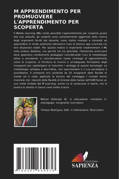 Il Mobile Learning (ML) rende possibile l'apprendimento per scoperta grazie alla sua ubiquità, gli studenti sono costantemente aggiornati dalla ricerca degli argomenti forniti dal docente, sono inoltre motivati e stimolati ad apprendere in modo autonomo attraverso l'uso di diverse app scaricate sui loro dispositivi mobili. Per questo motivo è importante implementare il ML nella pratica didattica, ma perché ciò sia possibile, l'Università americana deve apportare cambiamenti pedagogici considerando l'uso di metodologie attive e prendendo in considerazione nuove strategie di apprendimento come la scoperta, la fornitura di risorse e un'adeguata formazione degli insegnanti per capitalizzare al massimo i vantaggi di queste tecnologie. La metodologia utilizzata è descrittiva, non sperimentale e il suo paradigma è quantitativo. Il campione era costituito da 25 insegnanti della Facoltà di Sanità ed è stata applicata la tecnica del sondaggio. I risultati hanno mostrato che i docenti della Facoltà di Scienze della Salute dell'UAM fanno un uso molto limitato del M Learning, anche se lo conoscono in teoria, ma in pratica le attività in classe sono molto scarse.