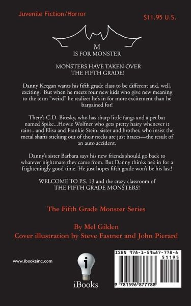 M IS FOR MONSTER MONSTERS HAVE TAKEN OVER THE FIFTH GRADE! Danny Keegan wants his fifth grade class to be different and, well, exciting. But when he meets four new kids who give new meaning to the term "weird" he realizes he’s in for more excitement than he bargained for!! There’s C.D. Bitesky, who has sharp little fangs and a pet bat named Spike . . . Howie Wolfner who gets pretty hairy whenever it rains . . . and Elisa and Frankie Stein, sister and brother, who insist the metal shafts sticking out of their necks are just braces—the result of an auto accident. Danny’s sister Barbara says his new friends should go back to whatever nightmare they came from. But Danny thinks he’s in for a frighteningly good time. He just hopes fifth grade won’t be his last! WELCOME TO P.S. 13!