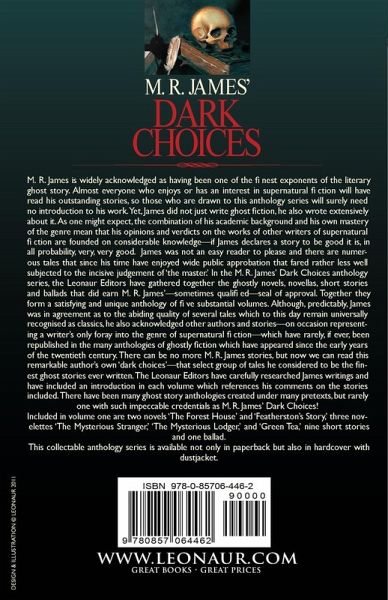 M. R. James is widely acknowledged as having been one of the finest exponents of the literary ghost story. Almost everyone who enjoys or has an interest in supernatural fiction will have read his outstanding stories, so those who are drawn to this anthology series will surely need no introduction to his work. Yet, James did not just write ghost fiction, he also wrote extensively about it. As one might expect, the combination of his academic background and his own mastery of the genre mean that his opinions and verdicts on the works of other writers of supernatural fiction are founded on considerable knowledge-if James declares a story to be good it is, in all probability, very, very good. James was not an easy reader to please and there are numerous tales that since his time have enjoyed wide public approbation that fared rather less well subjected to the incisive judgement of 'the master.' In the M. R. James' Dark Choices anthology series, the Leonaur Editors have gathered together the ghostly novels, novellas, short stories and ballads that did earn M. R. James'-sometimes qualified-seal of approval. Together they form a satisfying and unique anthology of five substantial volumes. Although, predictably, James was in agreement as to the abiding quality of several tales which to this day remain universally recognised as classics, he also acknowledged other authors and stories-on occasion representing a writer's only foray into the genre of supernatural fiction-which have rarely, if ever, been republished in the many anthologies of ghostly fiction which have appeared since the early years of the twentieth century. There can be no more M. R. James stories, but now we can read this remarkable author's own 'dark choices'-that select group of tales he considered to be the finest ghost stories ever written. The Leonaur Editors have carefully researched James writings and have included an introduction in each volume which references his comments on the stories included. There have been many ghost story anthologies created under many pretexts, but rarely one with such impeccable credentials as M. R. James' Dark Choices! Included in volume one are two novels 'The Forest House' and 'Featherston's Story,' three novelettes 'The Mysterious Stranger,' 'The Mysterious Lodger,' and 'Green Tea,' nine short stories and one ballad. This collectable anthology series is available not only in paperback but also in hardcover with dustjacket.