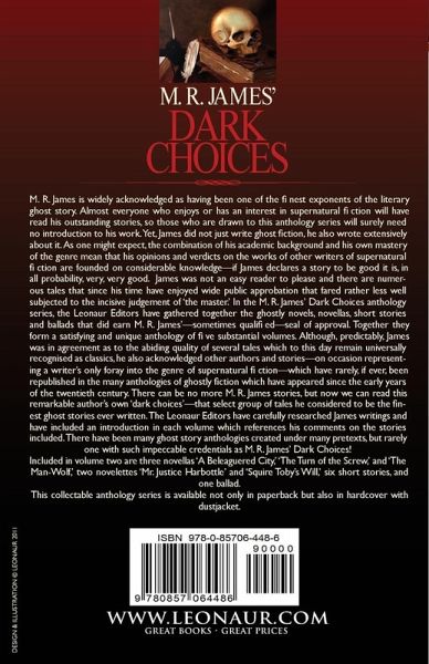 M. R. James is widely acknowledged as having been one of the finest exponents of the literary ghost story. Almost everyone who enjoys or has an interest in supernatural fiction will have read his outstanding stories, so those who are drawn to this anthology series will surely need no introduction to his work. Yet, James did not just write ghost fiction, he also wrote extensively about it. As one might expect, the combination of his academic background and his own mastery of the genre mean that his opinions and verdicts on the works of other writers of supernatural fiction are founded on considerable knowledge-if James declares a story to be good it is, in all probability, very, very good. James was not an easy reader to please and there are numerous tales that since his time have enjoyed wide public approbation that fared rather less well subjected to the incisive judgement of 'the master.' In the M. R. James' Dark Choices anthology series, the Leonaur Editors have gathered together the ghostly novels, novellas, short stories and ballads that did earn M. R. James'-sometimes qualified-seal of approval. Together they form a satisfying and unique anthology of five substantial volumes. Although, predictably, James was in agreement as to the abiding quality of several tales which to this day remain universally recognised as classics, he also acknowledged other authors and stories-on occasion representing a writer's only foray into the genre of supernatural fiction-which have rarely, if ever, been republished in the many anthologies of ghostly fiction which have appeared since the early years of the twentieth century. There can be no more M. R. James stories, but now we can read this remarkable author's own 'dark choices'-that select group of tales he considered to be the finest ghost stories ever written. The Leonaur Editors have carefully researched James writings and have included an introduction in each volume which references his comments on the stories included. There have been many ghost story anthologies created under many pretexts, but rarely one with such impeccable credentials as M. R. James' Dark Choices! Included in volume two are three novellas 'A Beleaguered City,' 'The Turn of the Screw,' and 'The Man-Wolf,' two novelettes 'Mr. Justice Harbottle' and 'Squire Toby's Will,' six short stories, and one ballad. This collectable anthology series is available not only in paperback but also in hardcover with dustjacket.