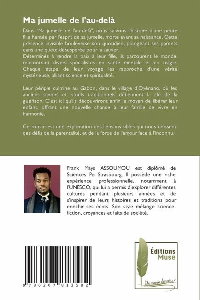 Dans "Ma jumelle de l'au-delà", nous suivons l'histoire d'une petite fille hantée par l'esprit de sa jumelle, morte avant sa naissance. Cette présence invisible bouleverse son quotidien, plongeant ses parents dans une quête désespérée pour la sauver.Déterminés à rendre la paix à leur fille, ils parcourent le monde, rencontrant divers spécialistes en santé mentale et en magie. Chaque étape de leur voyage les rapproche d'une vérité mystérieuse, alliant science et spiritualité.Leur périple culmine au Gabon, dans le village d'Oyénano, où les anciens savoirs et rituels traditionnels détiennent la clé de la guérison. C'est ici qu'ils découvriront enfin le moyen de libérer leur enfant, offrant une nouvelle chance à leur famille de vivre en harmonie.Ce roman est une exploration des liens invisibles qui nous unissent, des défis de la parentalité, et de la force de l'amour face à l'inconnu.