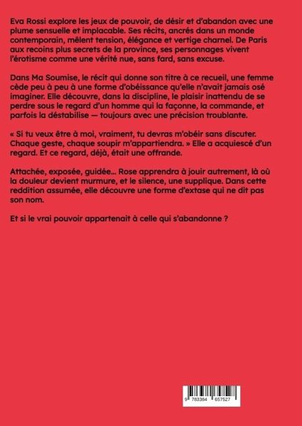 Eva Rossi explore les jeux de pouvoir, de désir et d'abandon avec une plume sensuelle et implacable. Ses récits, ancrés dans un monde contemporain, mêlent tension, élégance et vertige charnel. De Paris aux recoins plus secrets de la province, ses personnages vivent l'érotisme comme une vérité nue, sans fard, sans excuse.Dans Ma Soumise, le récit qui donne son titre à ce recueil, une femme cède peu à peu à une forme d'obéissance qu'elle n'avait jamais osé imaginer. Elle découvre, dans la discipline, le plaisir inattendu de se perdre sous le regard d'un homme qui la façonne, la commande, et parfois la déstabilise - toujours avec une précision troublante.« Si tu veux être à moi, vraiment, tu devras m'obéir sans discuter. Chaque geste, chaque soupir m'appartiendra. » Elle a acquiescé d'un regard. Et ce regard, déjà, était une offrande.Attachée, exposée, guidée... Rose apprendra à jouir autrement, là où la douleur devient murmure, et le silence, une supplique. Dans cette reddition assumée, elle découvre une forme d'extase qui ne dit pas son nom.Et si le vrai pouvoir appartenait à celle qui s'abandonne ?