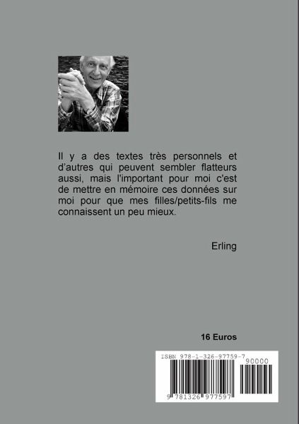 Il y a des textes très personnels et d'autres qui peuvent sembler flatteurs aussi, mais l'important pour moi c'est de mettre en mémoire ces données sur moi pour que mes filles/petits-fils me connaissent un peu mieux. Comme vous le verrez en lisant certains textes c'est justement une chose qui m'a manqué. J'aurais tellement aimé avoir plus de souvenirs de mes parents ! Donc, pour moi, ce petit livre vous est vraiment et simplement destiné. Il n'y a pas d'effets de style, ce sont simplement des faits marquants de ma vie que je vous raconte ici, les gens et les endroits merveilleux que j'ai pu croiser ou rencontrer, et avant tout vous dire à quel point cette vie a été et est toujours merveilleuse. Alors, les répétitions, ce n'est pas bien grave,j'espère simplement que vous ne vous ennuierez pas trop en lisant ces quelques pages et que parfois, elles vous feront sourire, quand le temps sera passé et que je ne serai plus là.