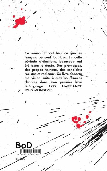 Ce roman dit tout haut ce que les français pensent tout bas. En cette période d'élections, beaucoup ont été dans le doute. Des promesses, des propos haineux, des candidats racistes et radicaux. Ce livre apporte ma vision suite à mes souffrances décrites dans mon premier livre témoignage 1972 NAISSANCE D'UN MONSTRE;