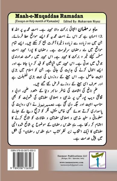 Ramadan is a very blessed month. It is a great favor of Allah to the Ummah Muhammadiyah that He has given the Ummah Muhammadiyah such opportunities, in which they can collect maximum good deeds for the Hereafter. Among all such occasions, the month of Ramadan is at the top. The entire month of Ramadan is a month of blessings for the Muslim Ummah. In this month, the devils are imprisoned and Muslims are instructed to perform such actions, which are of great importance in Islam. The fasts of this month have a great merit and only the fasts of this month have been prescribed. This book presents a selection of important, informative and useful articles regarding the holy month of Ramadan.