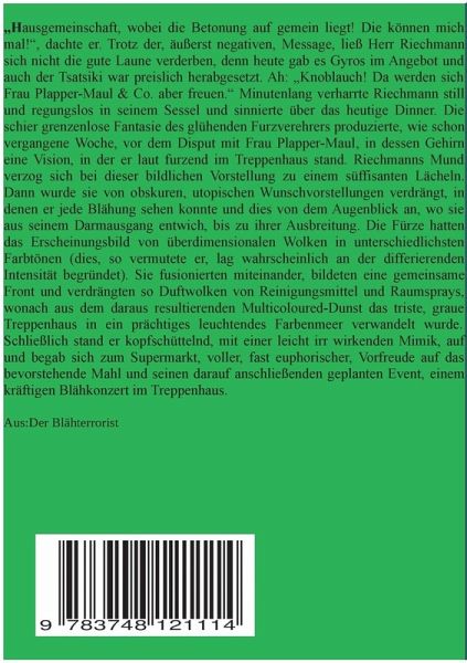 Mysteriöse Lichter, Zufluchtsorte, traumatisierte Mettbären, Blähterroristen. Der Autor führt den Leser in seinen Geschichten von bizarren fremde Welten, hin zu Todesplätzen, um dann in amüsanten Storys wie Die Gefahren des Krümeltabaks zu münden. Den Abschluss des kurzweiligen Buches bilden dann einige Gedichte.Eine Redakteurin schrieb in einem Artikel, dass ein Hang zum Schrägen und Skurrilen das Lesen der Bücher des Autors erleichtere. Diese Aussage ist sehr zutreffend. Ideenreich und kreativ mit zum Teil sehr ungewöhnlichen Themen, dabei etliche Genres abdeckend, ist das Buch äußerst unterhaltsam und absolut empfehlenswert.…mehr