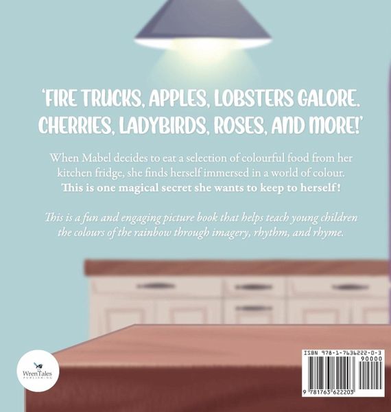 'FIRE TRUCKS, APPLES, LOBSTERS GALORE. CHERRIES, LADYBIRDS, ROSES AND MORE!' When Mabel decides to eat a selection of colourful food from her kitchen fridge, she finds herself immersed in a world of colour. This is one secret she wants to keep to herself! The story follows Mabel as she discovers the colours of the rainbow through a healthy meal of fruits and vegetables. Each page features a double spread showcasing transport, animals, foods and items of a particular colour of the rainbow, making learning both engaging and fun. In Mabel's Magical Meal, several key themes and messages stand out.Self-Care and Listening to Your Body: Mabel's feeling of being unwell stems from not eating all day. This highlights the importance of nourishing our bodies and paying attention to our physical needs. Imagination and Creativity: The magical, vibrant adventures that Mabel experiences with each food item reflect the power of imagination. The Power of Colour and Nutrition: The colourful foods Mabel eats lead to magical, colour-rich visions, subtly reinforcing the idea that eating a variety of foods-especially colourful ones-can be both fun and healthy. Exploration and Discovery: Mabel's exploration of the "food rainbow" introduces children to the idea of discovering new things in the world around them. Personal Growth and Healing: Mabel's journey shows how taking action, like eating healthy foods, can lead to personal growth and healing. The Joy of Food and Wonder: The story teaches that food is not just for sustenance but can be a source of joy and excitement. These themes help children understand the importance of self-care, curiosity, and creativity, while also encouraging them to see food as both nourishing and exciting.