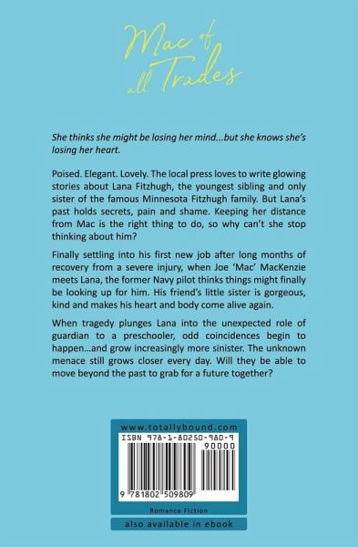She thinks she might be losing her mind...but she knows she's losing her heart. Poised. Elegant. Lovely. The local press loves to write glowing stories about Lana Fitzhugh, the youngest sibling and only sister of the famous Minnesota Fitzhugh family. But Lana's past holds secrets, pain and shame...so much that she's unworthy of a relationship with any good man, especially her brother Fitz's close friend Mac. Keeping her distance from him is the right thing to do, so why can't she stop thinking about him? Finally settling into his first new job after long months of recovery from a severe injury, when Joe 'Mac' MacKenzie meets Lana Fitzhugh, the former Navy pilot thinks things might finally be looking up for him. His friend's little sister is gorgeous, kind and makes his heart and body come alive again. But after they share an explosive embrace, she pushes him away so hard he's still reeling. When tragedy plunges Lana into the unexpected role of guardian to a preschooler, odd coincidences begin to happen...and grow increasingly more sinister. As Lana begins to fear that she herself might be the source of the danger, Mac doesn't hesitate to return to help her. The only thing better than the joy they discover as a makeshift family is the passion they find in each other's arms, but the unknown menace still grows closer every day. Will they be able to move beyond the past to grab for a future together?