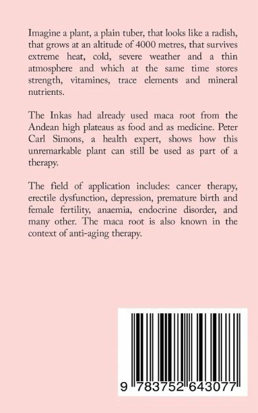 Imagine a plant, a plain tuber, that looks like a radish, that grows at an altitude of 4000 metres, that survives extreme heat, cold, severe weather and a thin atmosphere and which at the same time stores strength, vitamines, trace elements and mineral nutrients.The Inkas had already used maca root from the Andean high plateaus as food and as medicine. Peter Carl Simons, a health expert, shows how this unremarkable plant can still be used as part of a therapy.The field of application includes: cancer therapy, erectile dysfunction, depression, premature birth and female fertility, anaemia, endocrine disorder, and many other. The maca root is also known in the context of anti-aging therapy.