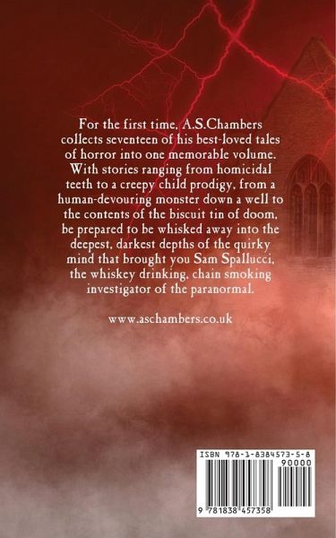 For the first time, A.S.Chambers collects seventeen of his best-loved tales of horror into one memorable volume.These dark, twisted and sometimes humorous short stories previously published in "Oh Taste And See", "All Things Dark And Dangerous" and "If Ye Loathe Me" range from homicidal teeth to a creepy child prodigy, from a human-devouring monster down a well to the contents of the biscuit tin of doom, be prepared to be whisked away into the deepest, darkest depths of the quirky mind that brought you Sam Spallucci, the whiskey drinking, chain smoking investigator of the paranormal. www.aschambers.co.uk