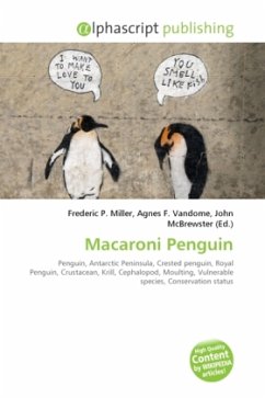 The Macaroni Penguin (Eudyptes chrysolophus) is a species of penguin found from the Subantarctic to the Antarctic Peninsula. One of six species of crested penguin, it is very closely related to the Royal Penguin, and some authorities consider the two to be a single species. It bears a distinctive yellow crest, and the face and upperparts are black and sharply delineated from the white underparts. Adults weigh on average 5.5 kg (12 lb) and are 70 cm (28 in) in length. The male and female are similar in appearance although the male is slightly larger with a relatively larger bill. Like all penguins, it is flightless, with a streamlined body and wings stiffened and flattened into flippers for a marine lifestyle. The diet consists of a variety of crustaceans, mainly krill, as well as small fish and cephalopods; the species consumes more marine life annually than any other species of seabird. These birds moult once a year, spending about three to four weeks ashore, before returning tothe sea. Numbering up to 100,000 individuals, the breeding colonies of the Macaroni Penguin are among the largest and densest of all penguin species.