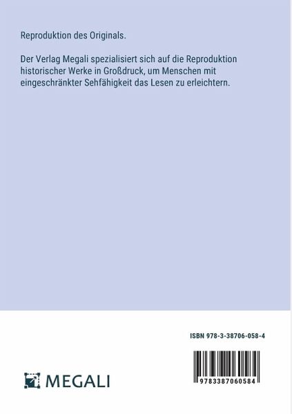 Reproduktion des Originals. Der Verlag Megali spezialisiert sich auf die Reproduktion historischer Werke in Großdruck, um Menschen mit eingeschränkter Sehfähigkeit das Lesen zu erleichtern.