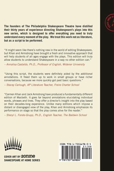 Macbeth is Book One in the eight-book series called Shakespeare At Home. Carmen Khan and Jack Armstrong, in their thirty years at The Philadelphia Shakespeare Theatre, have created dozens of Shakespeare productions. Time and again they have seen that, although there are already several major editions of these luminous classics in print, each with its own valuable contribution to make, there is none that provides everything the reader needs to understand the play. So, they have created their own edition, from a director's viewpoint, which distills their detailed notes on every line of the play…mehr