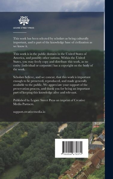 This work has been selected by scholars as being culturally important, and is part of the knowledge base of civilization as we know it. This work is in the "public domain in the United States of America, and possibly other nations. Within the United States, you may freely copy and distribute this work, as no entity (individual or corporate) has a copyright on the body of the work. Scholars believe, and we concur, that this work is important enough to be preserved, reproduced, and made generally available to the public. We appreciate your support of the preservation process, and thank you for…mehr