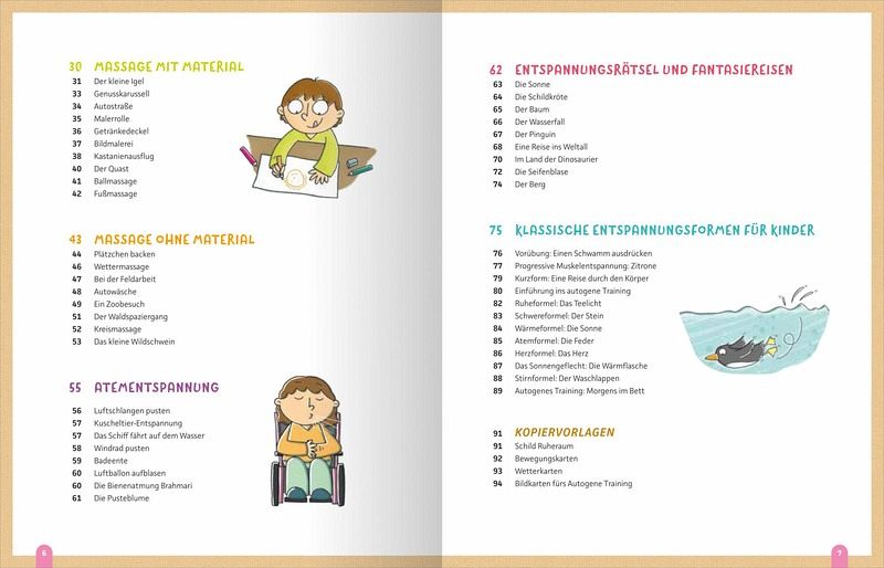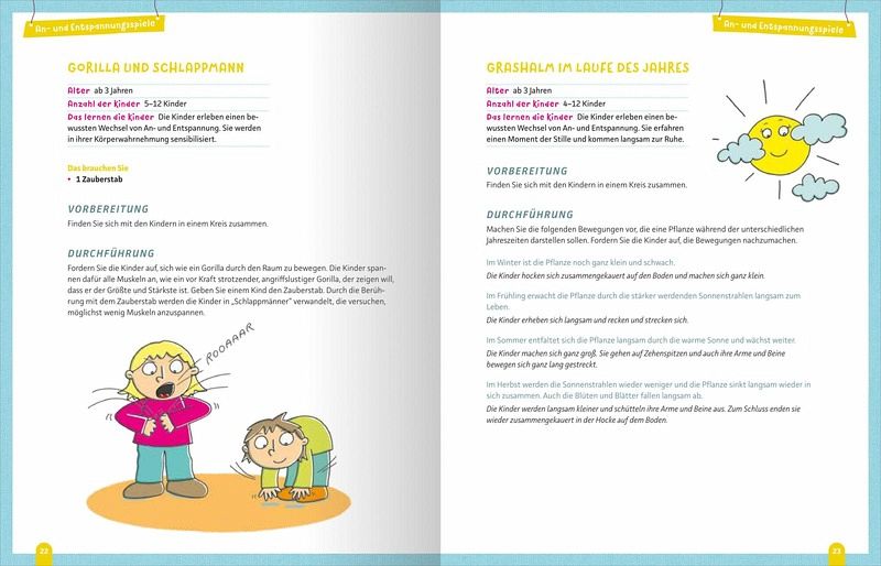 Die vielen abwechslungsreichen und kindgerechten Sinnes- und Wahrnehmungsspiele, Massage- und Atemübungen sowie Fantasiereisen helfen den Kindern nicht nur in die Entspannung zu finden, sondern fördern zudem auch das Selbstbewusstsein und die Selbstwahrnehmung.