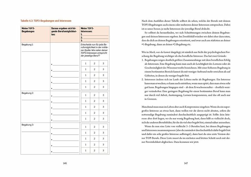 Bei der Berufswahl kommt es auf die eigenen Begabungen an und nicht nur auf persönliche Interessen. Das »Mach, was du kannst«-Workbook zeigt dir, wie du den Berufsweg findest, der zu dir passt. Das großformatige Workbook kann begleitend zum Buch »Mach, was du kannst« bearbeitet werden oder als eigenständiges Arbeitsbuch genutzt werden.