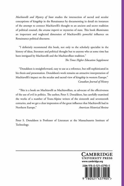 This book studies the intersection of sacred and secular conceptions of kingship in the Renaissance. The book documents in detail six instances of the attempt to connect Machiavelli's thought to an ancient and secret tradition of political counsel, the arcana imperii, or mysteries of state. The ways in which Renaissance writers attempted such a connection varied widely. In addition to carefully analyzing these arguments, the book documents patterns in their dissemination. Through his connection with mysteries of state, Machiavelli influenced not only Renaissance political ideas, but the transmission of these ideas. Machiavellian politics was a secret art; its vehicles, frequently secret books; and its authors and readers, sharers in a mystery.