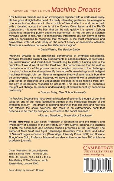This was the first cross-over book into the history of science written by an historian of economics. It shows how 'history of technology' can be integrated with the history of economic ideas. The analysis combines Cold War history with the history of postwar economics in America and later elsewhere, revealing that the Pax Americana had much to do with abstruse and formal doctrines such as linear programming and game theory. It links the literature on 'cyborg' to economics, an element missing in literature to date. The treatment further calls into question the idea that economics has been immune to postmodern currents, arguing that neoclassical economics has participated in the deconstruction of the integral 'self'. Finally, it argues for an alliance of computational and institutional themes, and challenges the widespread impression that there is nothing else besides American neoclassical economic theory left standing after the demise of Marxism.