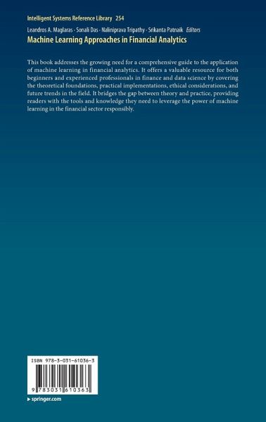 This book addresses the growing need for a comprehensive guide to the application of machine learning in financial analytics. It offers a valuable resource for both beginners and experienced professionals in finance and data science by covering the theoretical foundations, practical implementations, ethical considerations, and future trends in the field. It bridges the gap between theory and practice, providing readers with the tools and knowledge they need to leverage the power of machine learning in the financial sector responsibly.